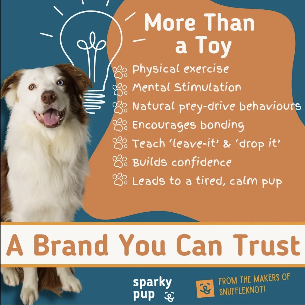 The RuffleTug is the perfect toy for your energetic pets. The blue ball RuffleTug is perfect for those pups who love a ball. With a strong handle there are multiple ways to encourage your dog to play and utilise in training activities. Giving them the physical and mental stimulation they all need!