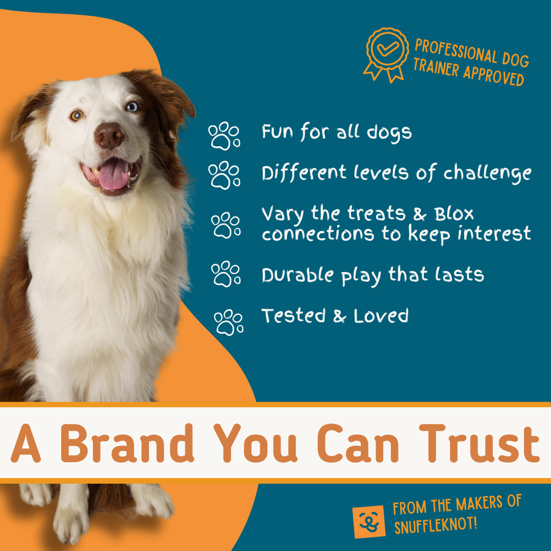 From the makers of the SnuffleKnot we bring you SnuffleBlox. Another fun filled scent game for your dog to enjoy.